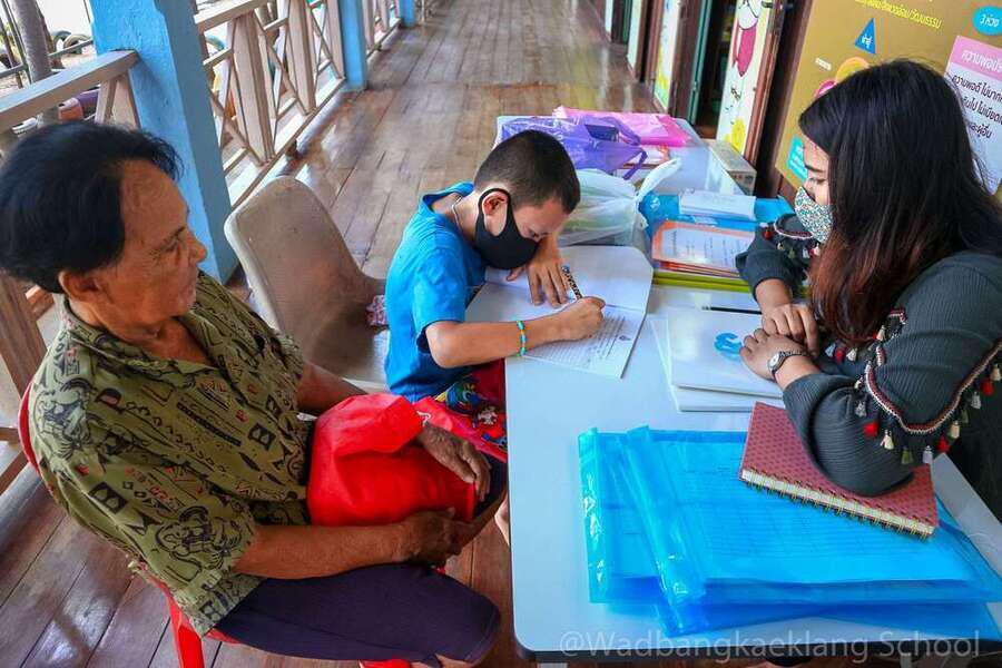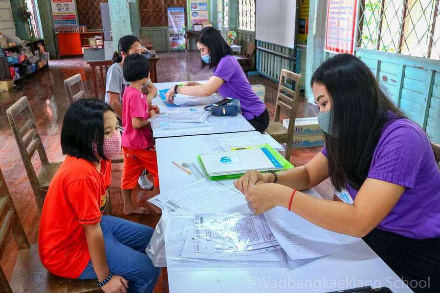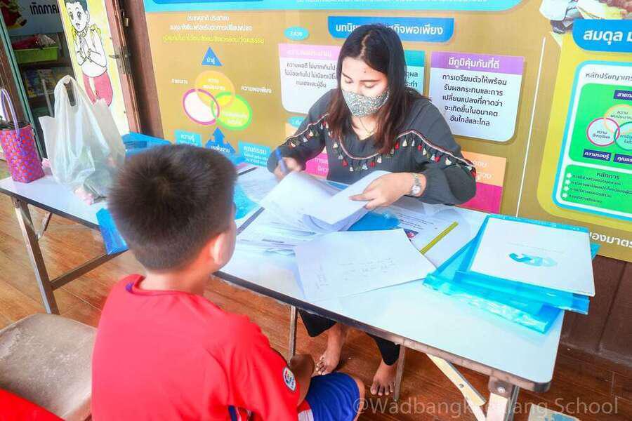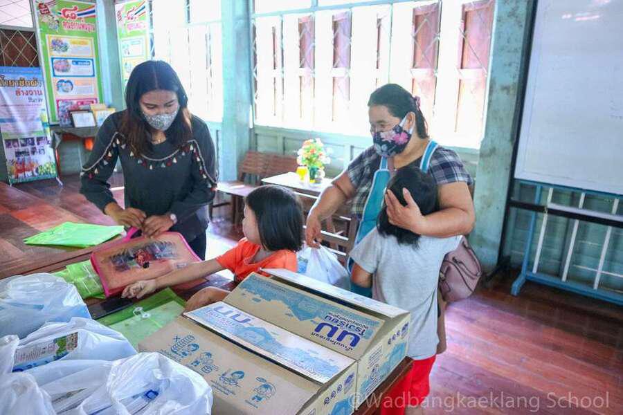 แจกอุปกรณ์การเรียน+นม+ใบงานสัปดาห์ที่2