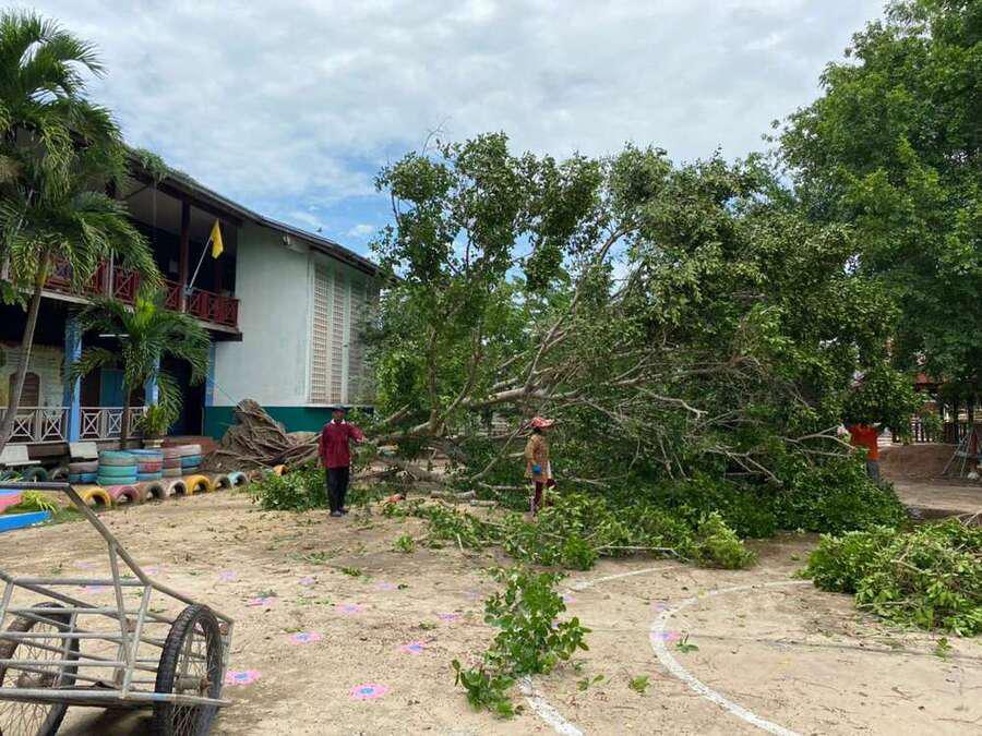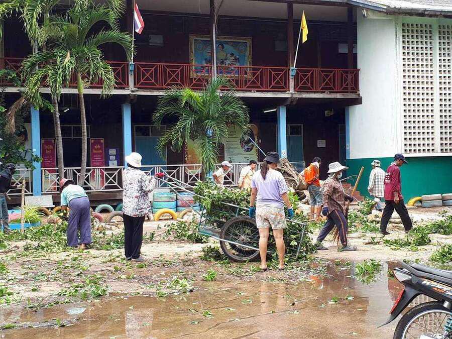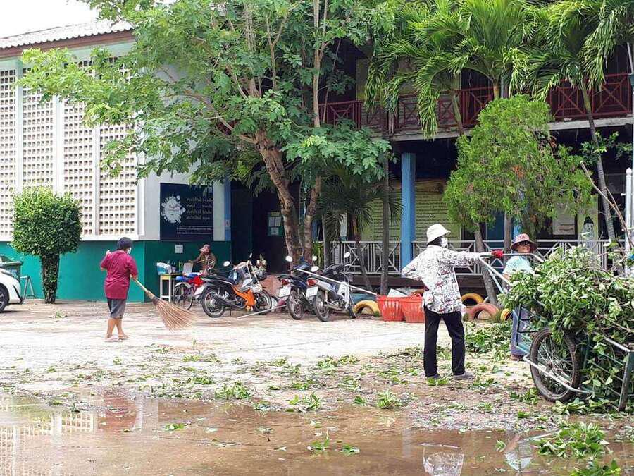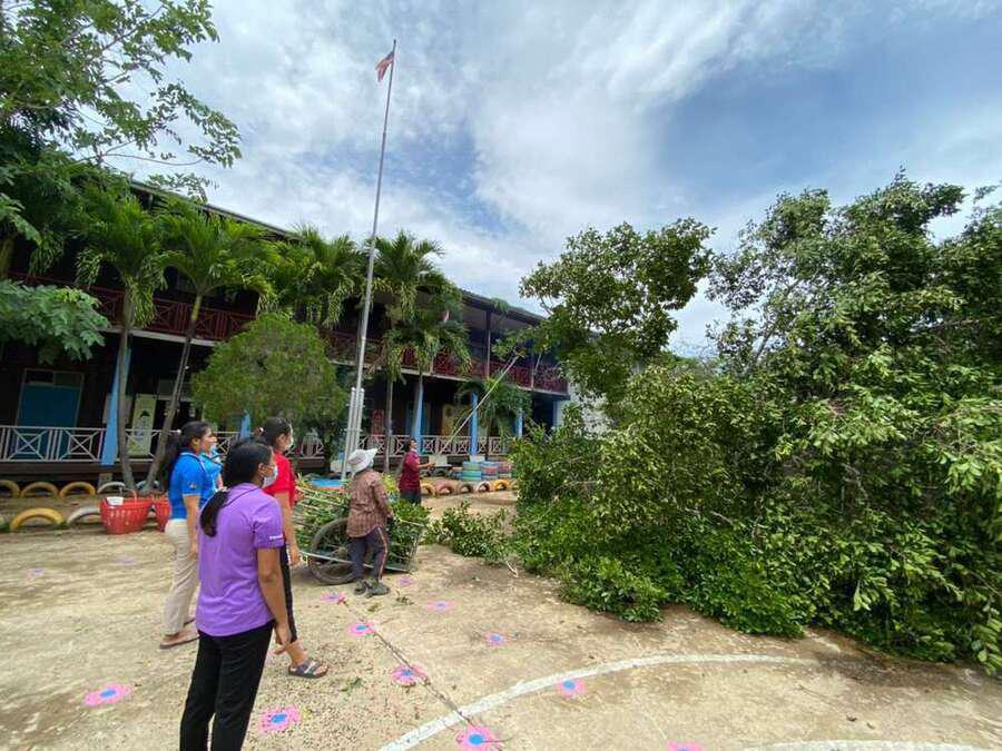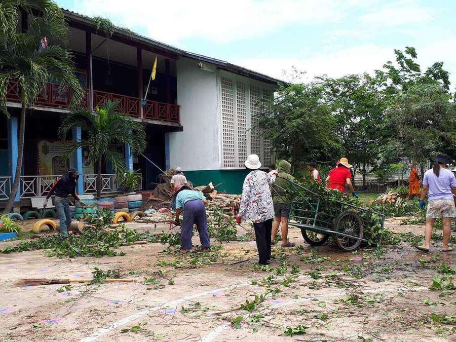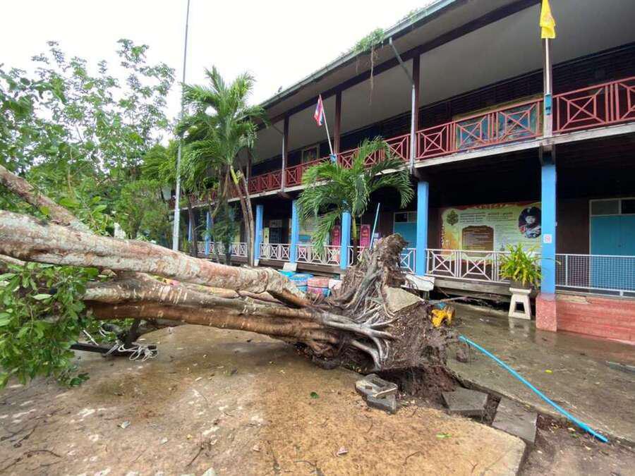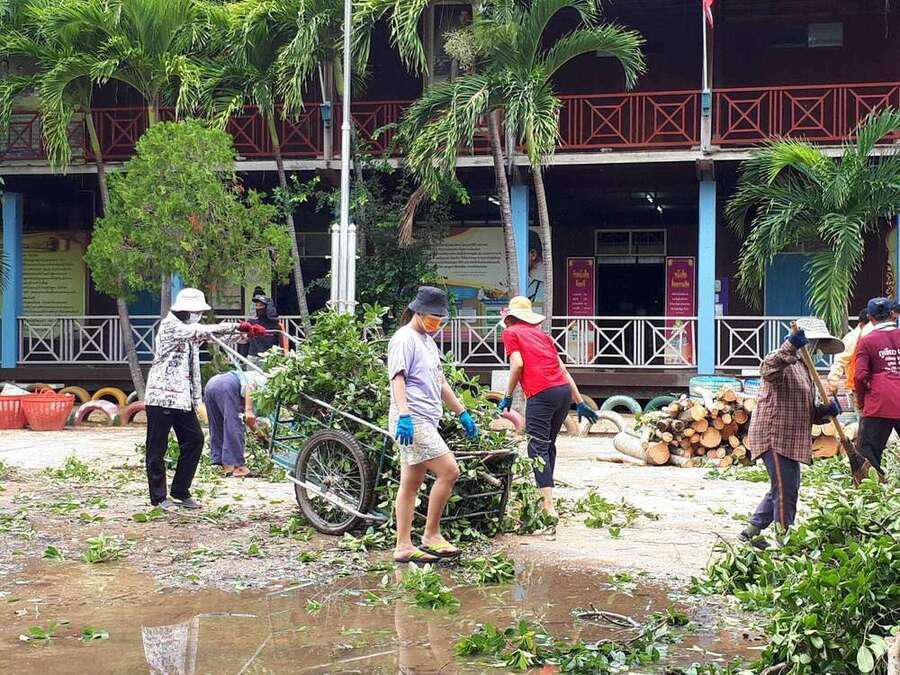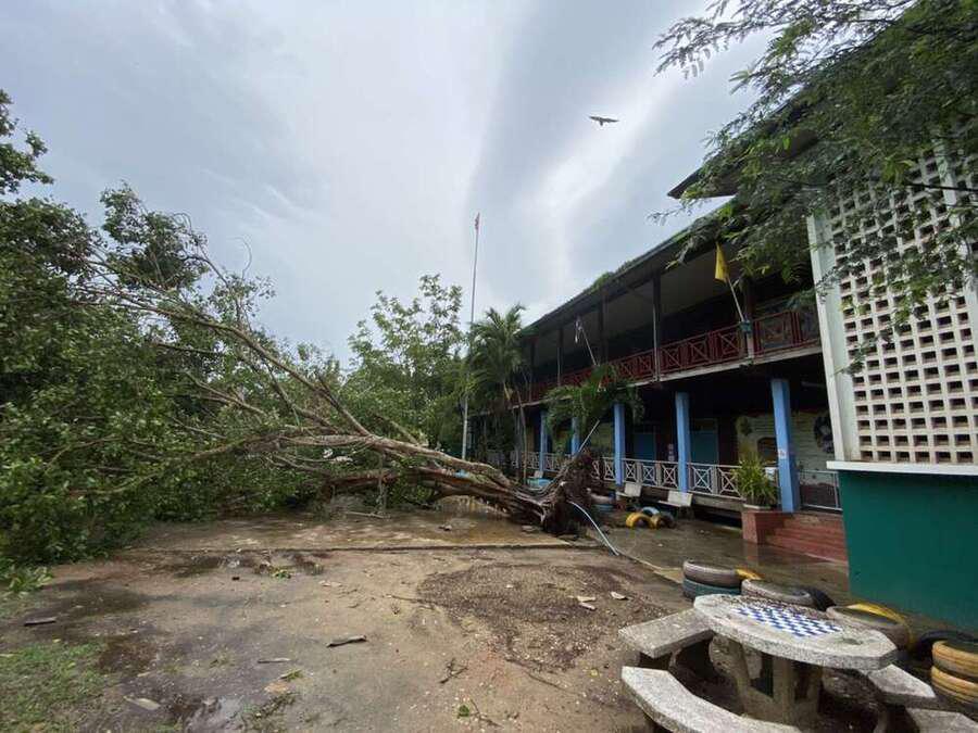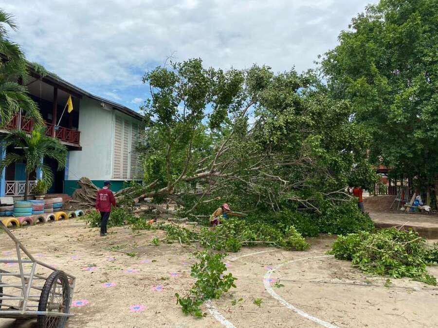 6 พฤษภาคม 2564 เวลาประมาณ 04.00 น. เกิดพายุทำให้เกิดฝนและลมแรงในพื้นที่จังหวัดสมุทรสงคราม ทำให้เกิดความเสียหายในวงกล้าง ต้นไม้และบ้านเรือนได้รับความเสียหาย รวมทั้งทำให้โรงเรียน ได้รับผลกระทบต้นไม้ใหญ่หน้าอาคารเรียนหักโค่นล้ม และมีกระเบื้องหลังคาเรียนจำนวนหนึ่งได้รับความเสียหาย หลังจากนั้นมีผู้ปกครองและชาวบ้านในพื้นที่ ฯ เข้ามาช่วยตัดต้นไม้ เพื่อเคลียพื้นที่ในโรงเรียนให้กลับมาสู่ภาวะปกติ S:0