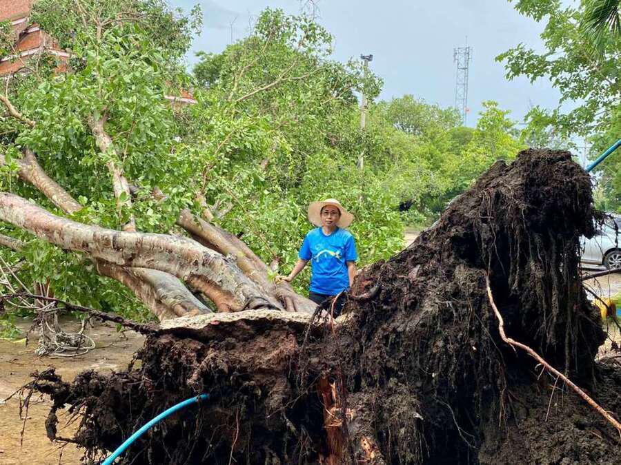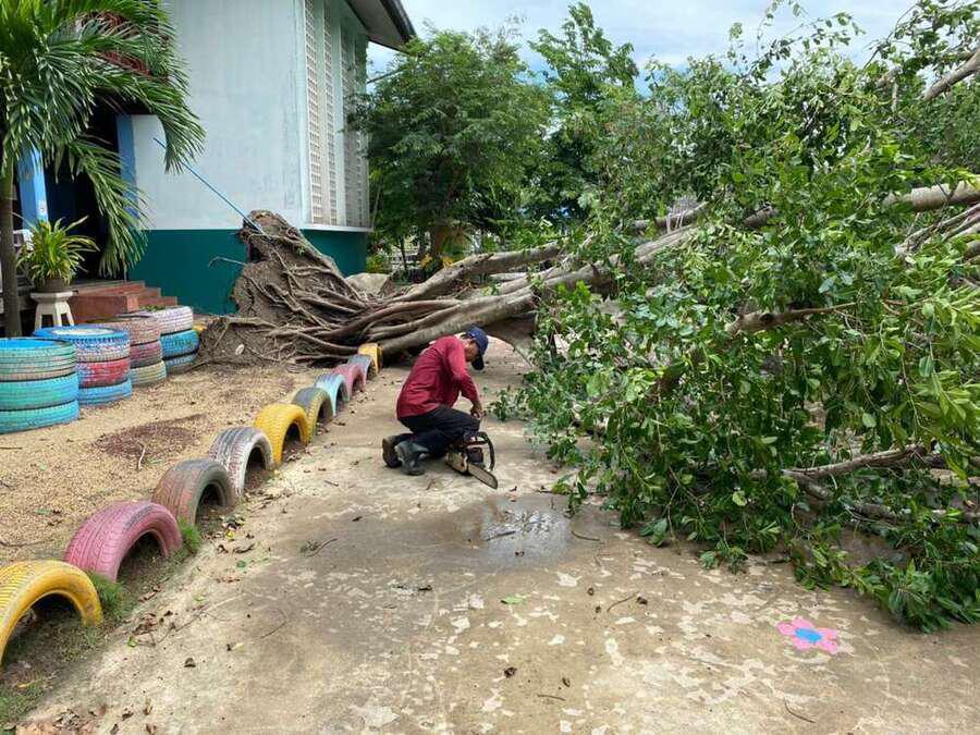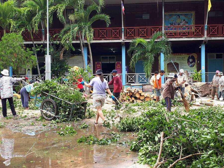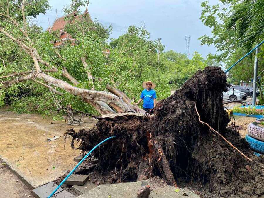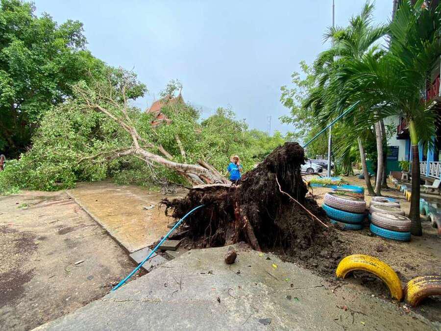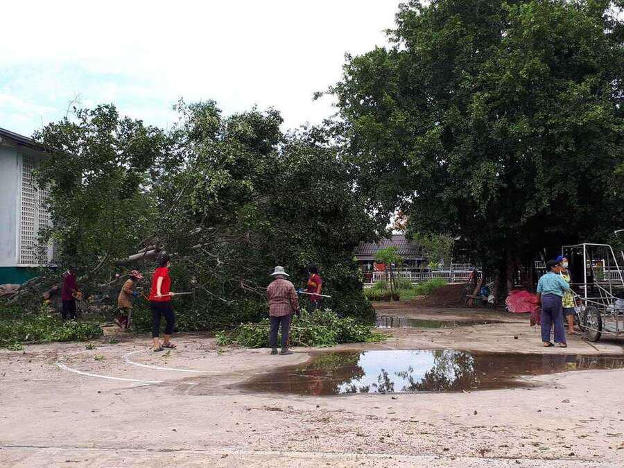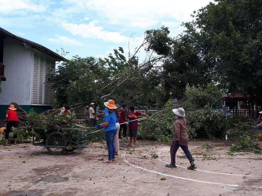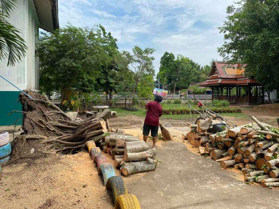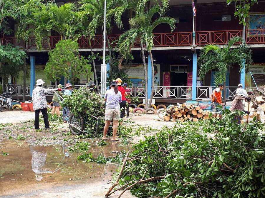 6 พฤษภาคม 2564 เวลาประมาณ 04.00 น. เกิดพายุทำให้เกิดฝนและลมแรงในพื้นที่จังหวัดสมุทรสงคราม ทำให้เกิดความเสียหายในวงกล้าง ต้นไม้และบ้านเรือนได้รับความเสียหาย รวมทั้งทำให้โรงเรียน ได้รับผลกระทบต้นไม้ใหญ่หน้าอาคารเรียนหักโค่นล้ม และมีกระเบื้องหลังคาเรียนจำนวนหนึ่งได้รับความเสียหาย หลังจากนั้นมีผู้ปกครองและชาวบ้านในพื้นที่ ฯ เข้ามาช่วยตัดต้นไม้ เพื่อเคลียพื้นที่ในโรงเรียนให้กลับมาสู่ภาวะปกติ S:0