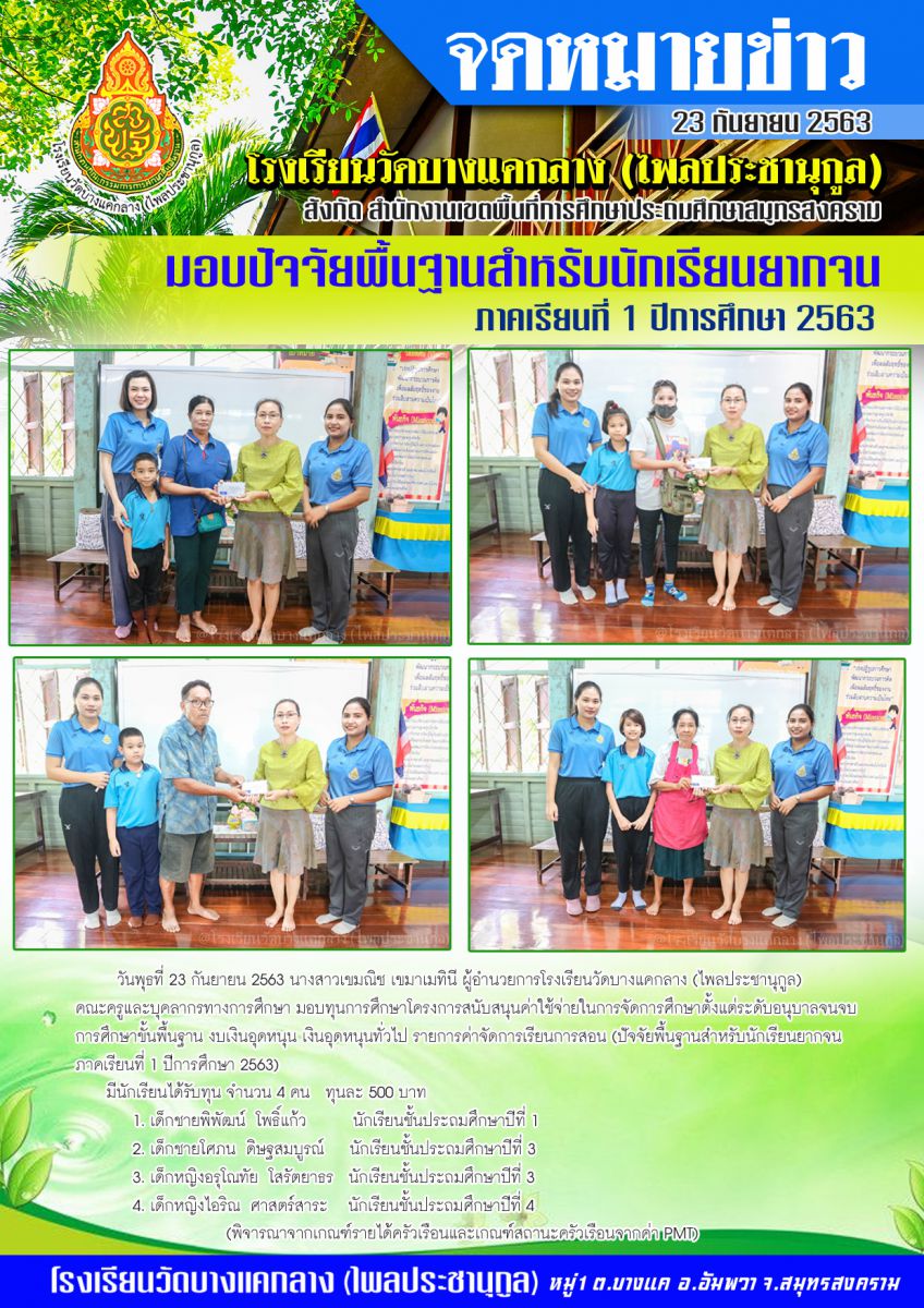 รับทุนปัจจัยพื้นฐานสำหรับนักเรียนยากจน 1/2563
